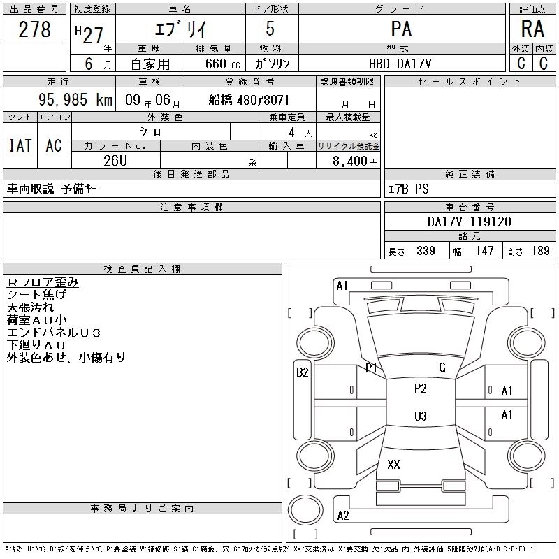 | PA LIMITED | HBD-DA17V | R06A | FR | 5AT | 658cc | 49ps(36kW)/5700rpm | AИ-92 | 1 090 800 | |