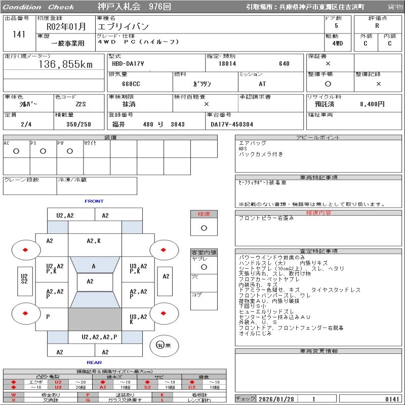 Год выпуска2020 Пробег 137 000 км КузовDA17V Комплектация4WD PC( HIGH ROOF )