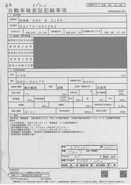 | PA LIMITED | HBD-DA17V | R06A | Part-time 4WD | 5MT | 658cc | 49ps(36kW)/5700rpm | AИ-92 | 1 101 600 | |