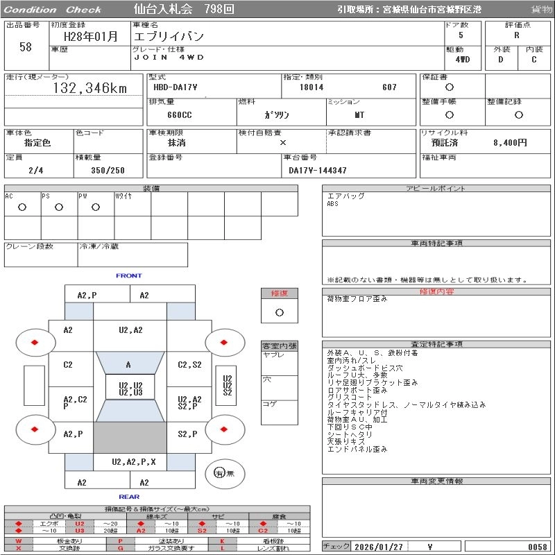 | PA LIMITED | HBD-DA17V | R06A | FR | 4AT | 658cc | 49ps(36kW)/5700rpm | AИ-92 | 1 112 400 | |
