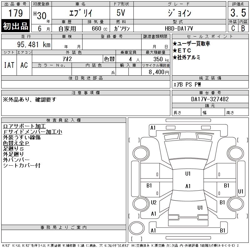 | PA LIMITED | HBD-DA17V | R06A | Part-time 4WD | 5MT | 658cc | 49ps(36kW)/5700rpm | AИ-92 | 1 101 600 | |