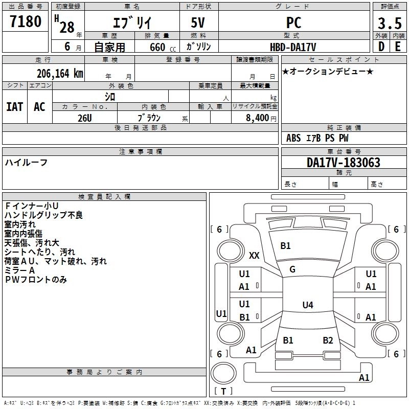 PA LIMITED HBD-DA17V R06A FR 4AT 658cc 49ps(36kW)/5700rpm AИ-92 1 112 400