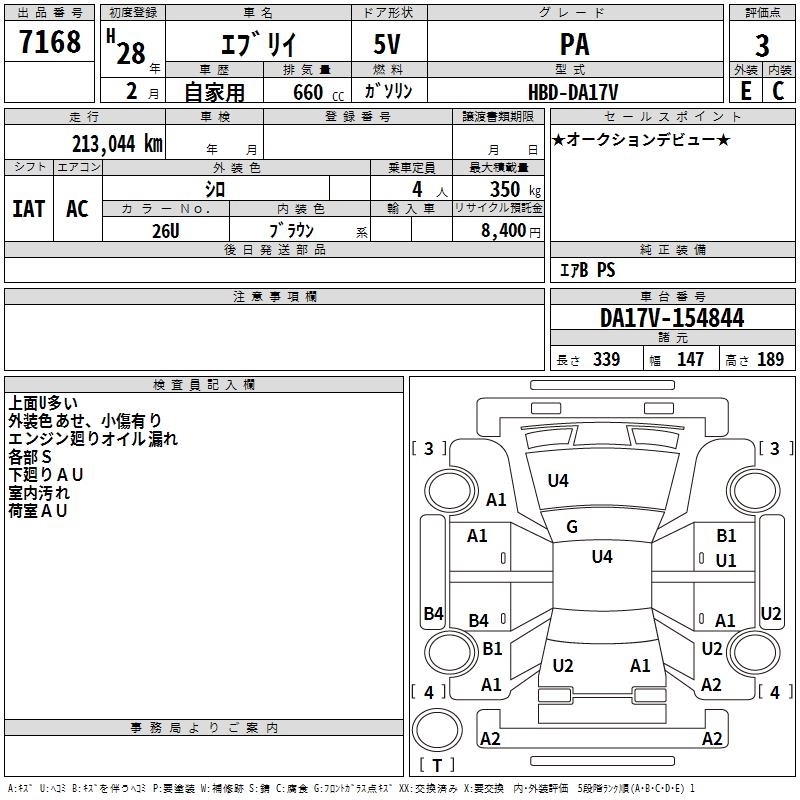 | PA LIMITED | HBD-DA17V | R06A | FR | 4AT | 658cc | 49ps(36kW)/5700rpm | AИ-92 | 1 112 400 | |