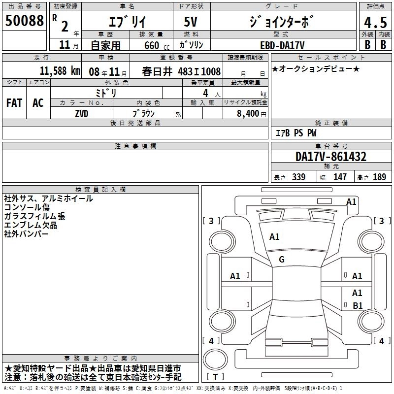 Статус выставлен на аукцион Лот 50088 Аукцион TAA Chubu Дата аукциона 19.03.2026