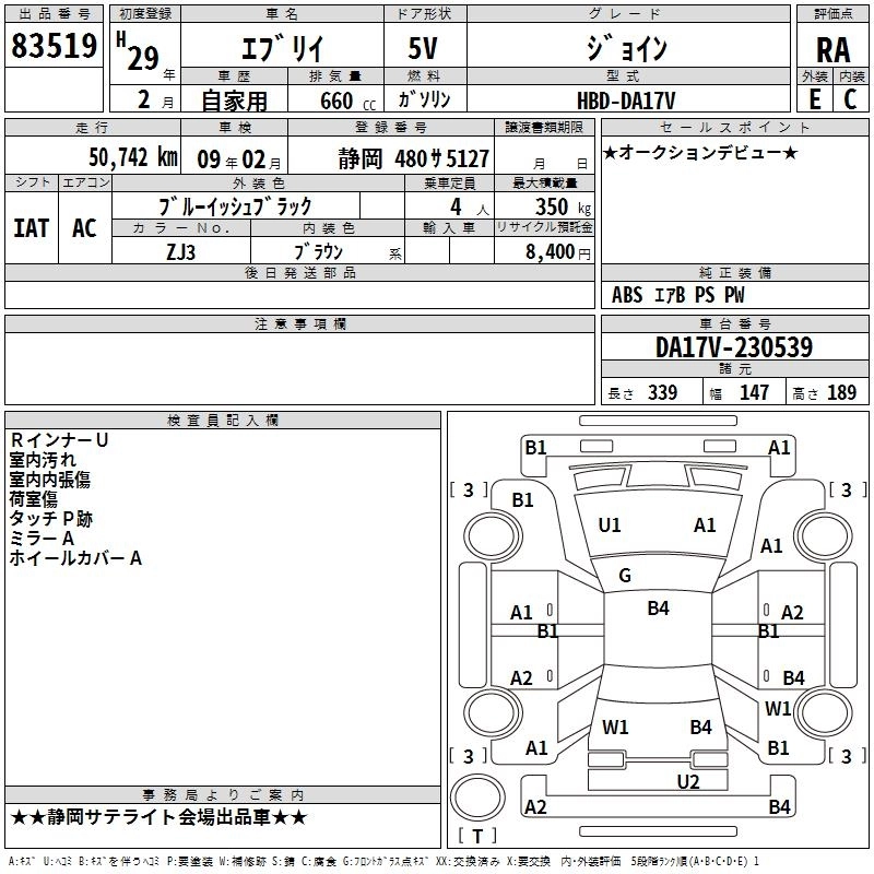 | PA LIMITED | HBD-DA17V | R06A | Part-time 4WD | 4AT | 658cc | 49ps(36kW)/5700rpm | AИ-92 | 1 242 000 | |