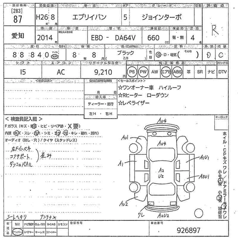 | JOIN TURBO | EBD-DA64V | K6A | Full-time 4WD | 4AT | 658cc | 64ps(47kW)/6000rpm | AИ-92 | 1 423 440 | |