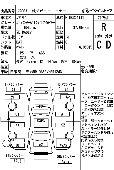 | PA | LE-DA62V | K6A | FR | 5MT | 658cc | 49ps(36kW)/5800rpm | AИ-92 | 838 000 | |