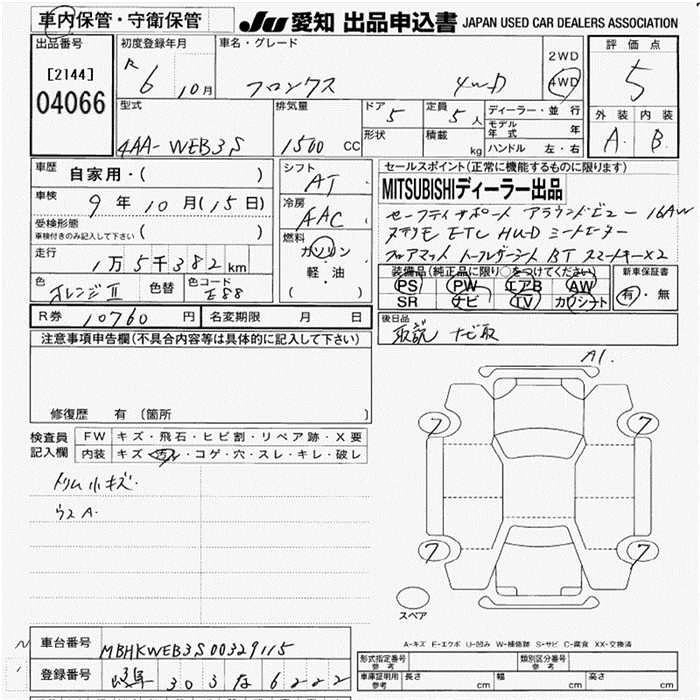 Статус выставлен на аукцион Лот 4066 Аукцион JU Aichi Дата аукциона 05.02.2026