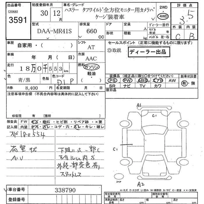 | A | DBA-MR31S | R06A | FF | 5MT | 658cc | 52ps(38kW)/6500rpm | AИ-92 | 1 100 520 |