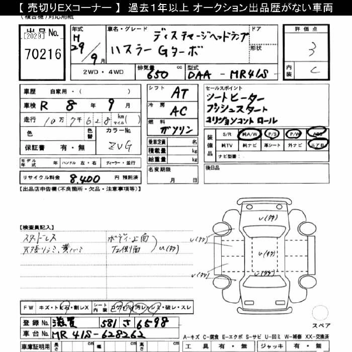 | A | DBA-MR31S | R06A | FF | 5MT | 658cc | 52ps(38kW)/6500rpm | AИ-92 | 1 100 520 |