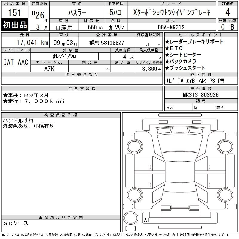 | A | DBA-MR31S | R06A | FF | CVT | 658cc | 52ps(38kW)/6000rpm | AИ-92 | 1 048 950 |
