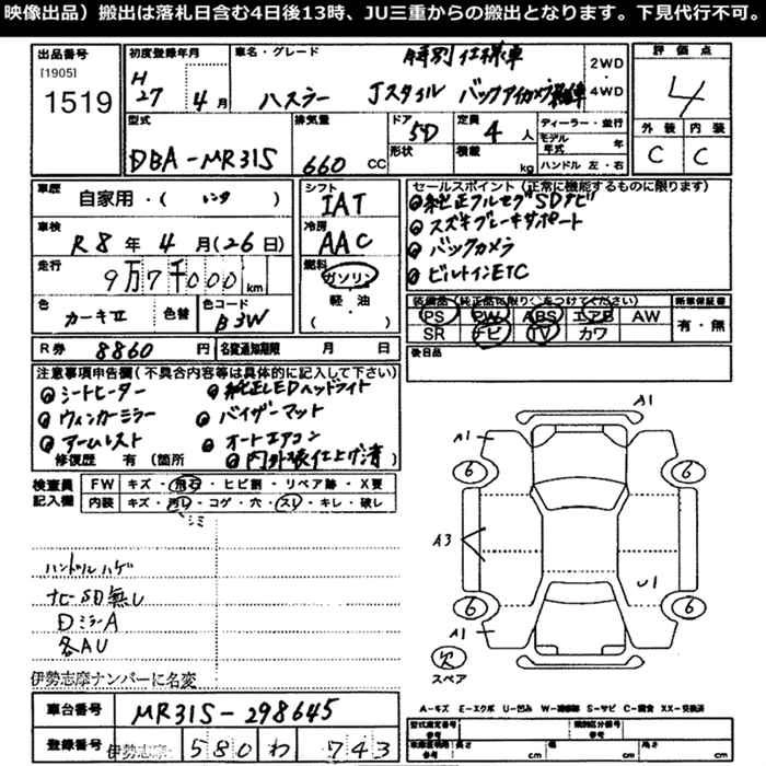 SUZUKI HUSTLER 2015 г., лот № 1519