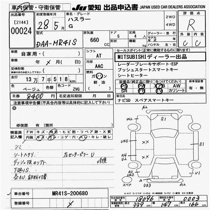 Год выпуска2016 Пробег 138 000 км КузовMR41S КомплектацияG