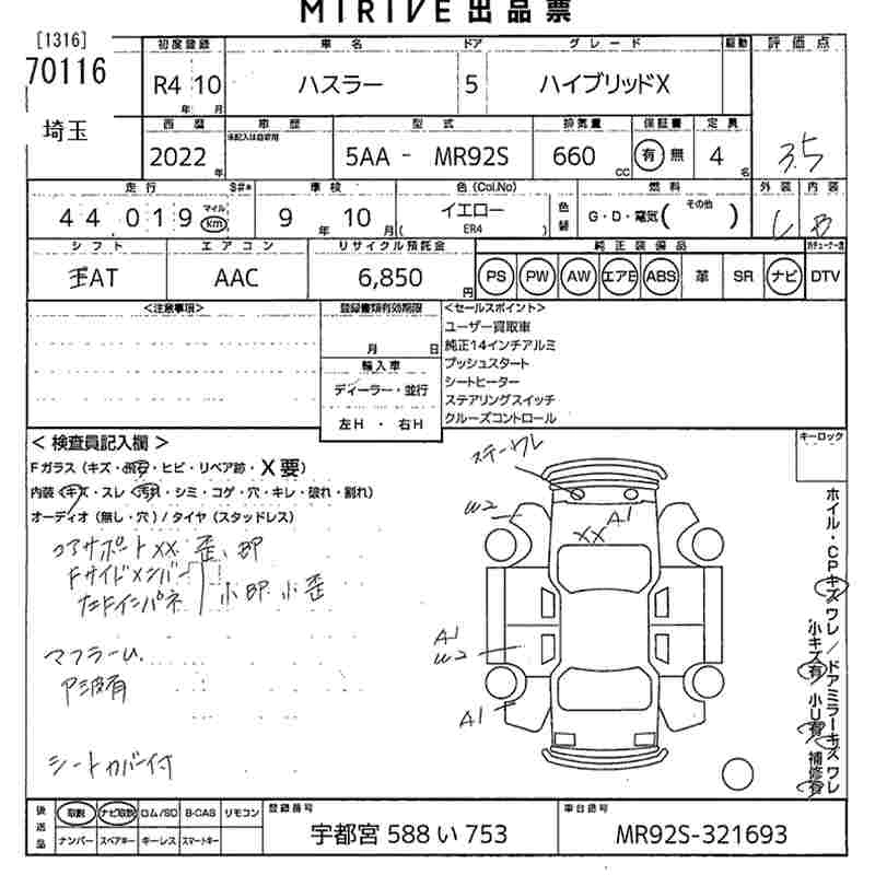 SUZUKI HUSTLER 2022 г., лот № 70116