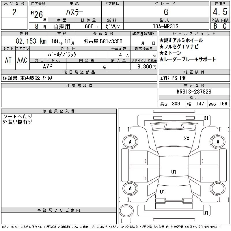 | A | DBA-MR31S | R06A | FF | CVT | 658cc | 52ps(38kW)/6000rpm | AИ-92 | 1 048 950 |