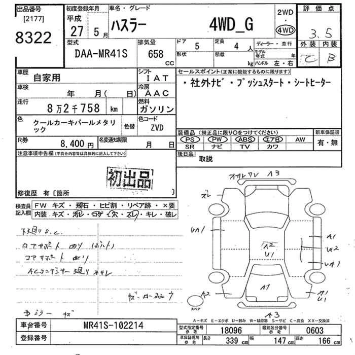 | A | DBA-MR31S | R06A | FF | CVT | 658cc | 52ps(38kW)/6500rpm | AИ-92 | 1 078 920 |