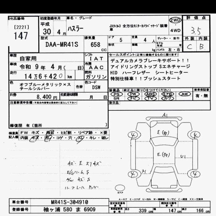 146 000 км КузовMR41S КомплектацияJ STYLE IIIZEN HOWE I MONITOR CAMERA PKGSOU TEA K