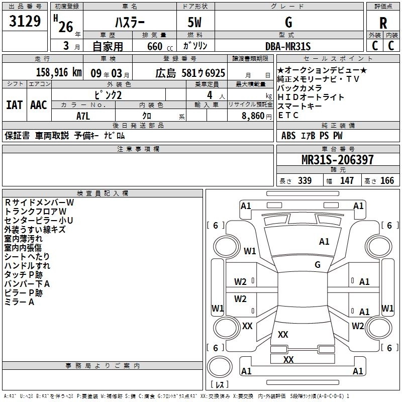 | A | DBA-MR31S | R06A | FF | CVT | 658cc | 52ps(38kW)/6000rpm | AИ-92 | 1 048 950 |