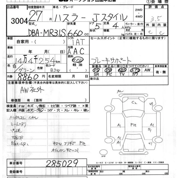 | A | DBA-MR31S | R06A | FF | 5MT | 658cc | 52ps(38kW)/6000rpm | AИ-92 | 1 078 920 | |