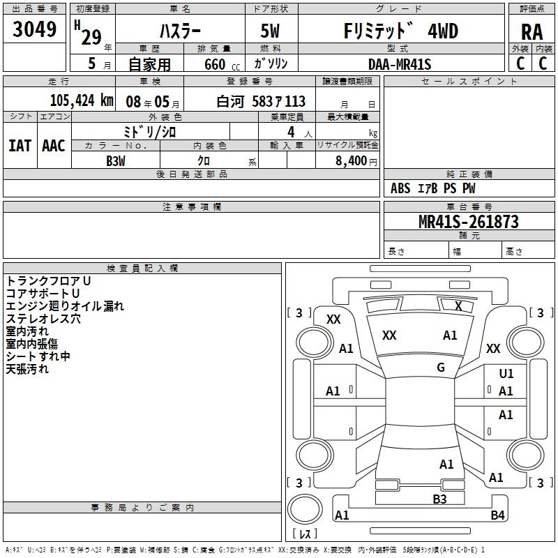 | A | DBA-MR31S | R06A | FF | 5MT | 658cc | 52ps(38kW)/6500rpm | AИ-92 | 1 100 520 |