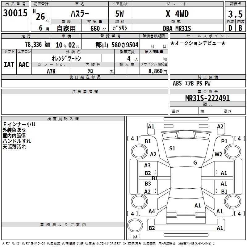 | A | DBA-MR31S | R06A | FF | CVT | 658cc | 52ps(38kW)/6000rpm | AИ-92 | 1 048 950 |