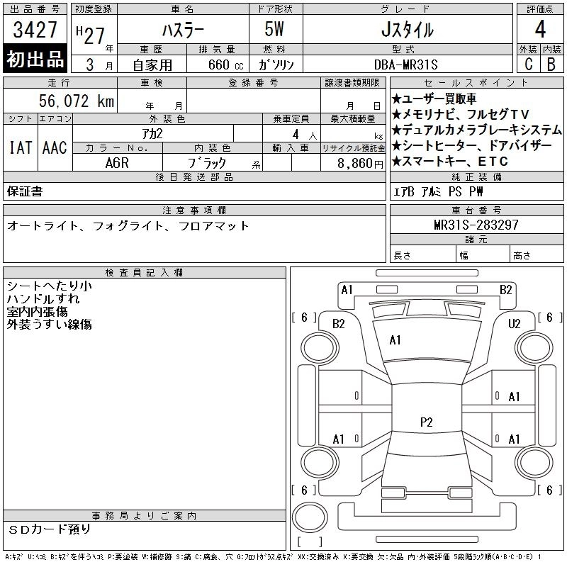 | J STYLE II TURBO | DAA-MR41S | R06A | Full-time 4WD | CVT | 658cc | 64ps(47kW)/6000rpm | AИ-92 | 1 737 720 | |