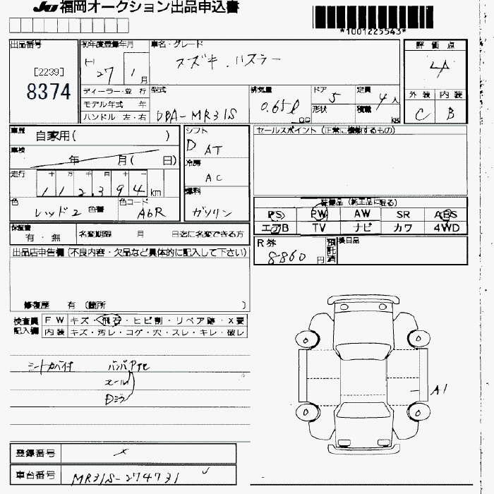 Статус выставлен на аукцион Лот 8374 Аукцион JU Fukuoka Дата аукциона 20.03.2026