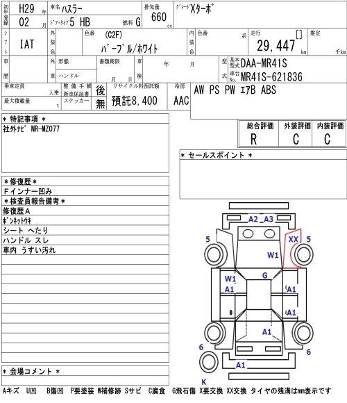 | A | DBA-MR31S | R06A | FF | 5MT | 658cc | 52ps(38kW)/6500rpm | AИ-92 | 1 100 520 |