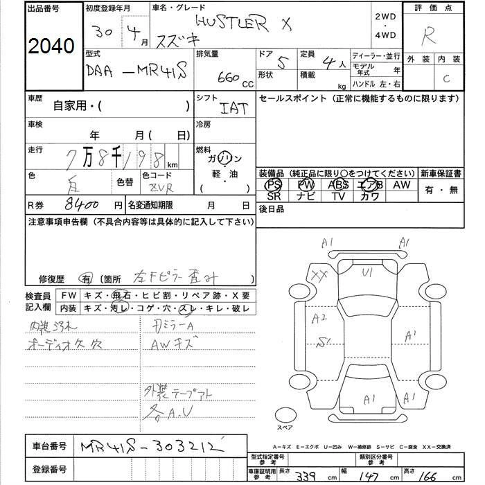 | A | DBA-MR31S | R06A | FF | 5MT | 658cc | 52ps(38kW)/6500rpm | AИ-92 | 1 100 520 |