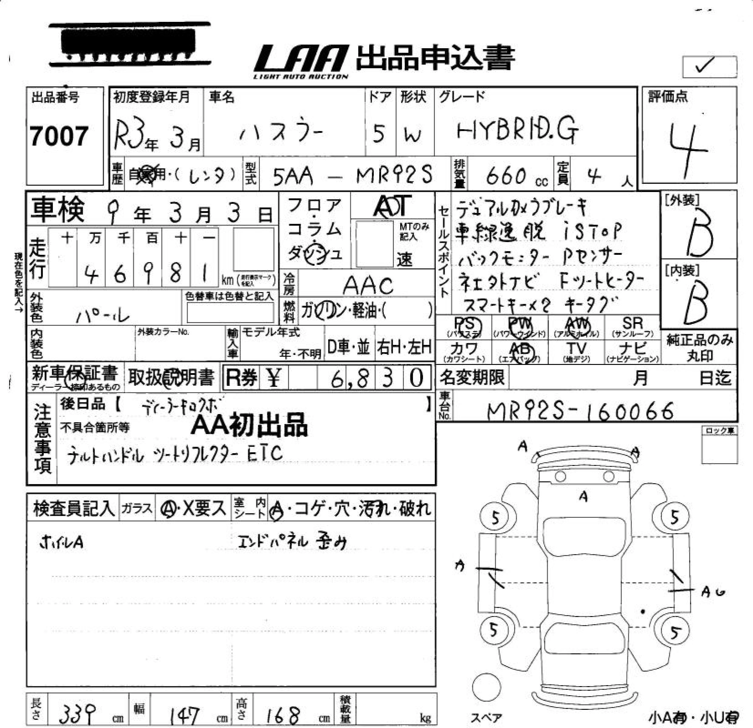 Статус выставлен на аукцион Лот 7007 Аукцион LAA Okayama Дата аукциона 20.03.2026