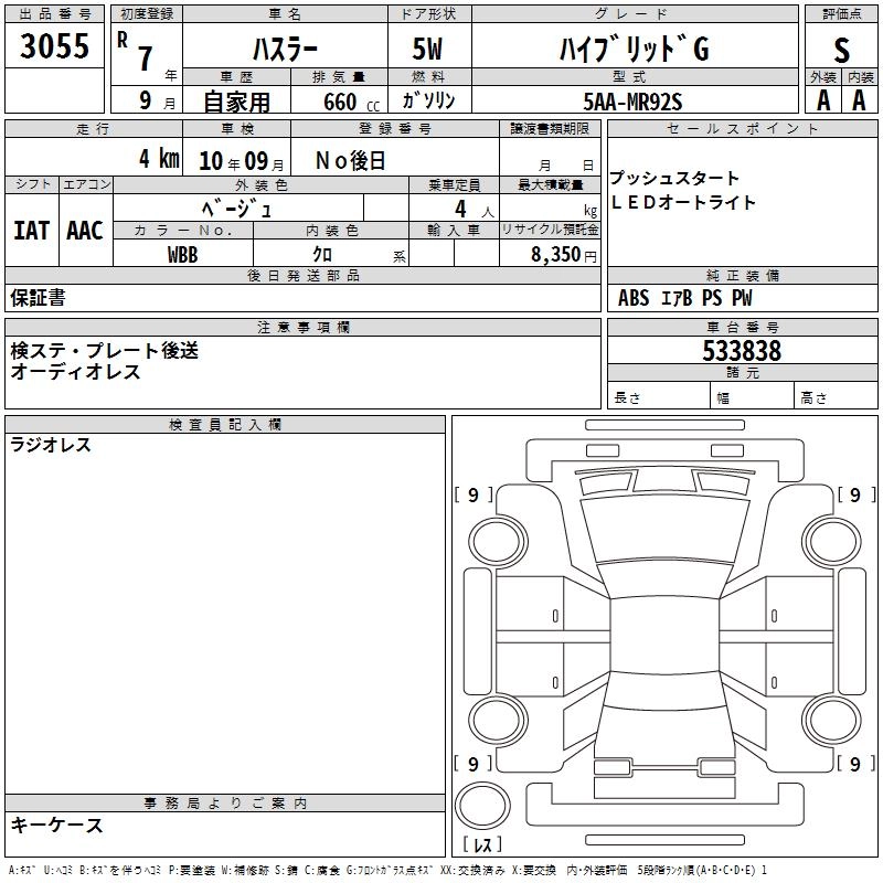 SUZUKI HUSTLER 2025 г., лот № 3055