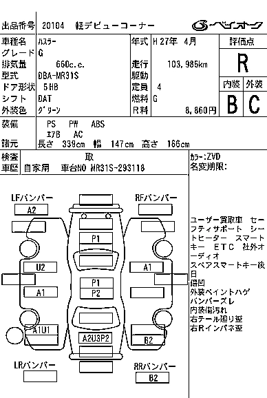 | A | DBA-MR31S | R06A | FF | CVT | 658cc | 52ps(38kW)/6000rpm | AИ-92 | 1 078 920 |