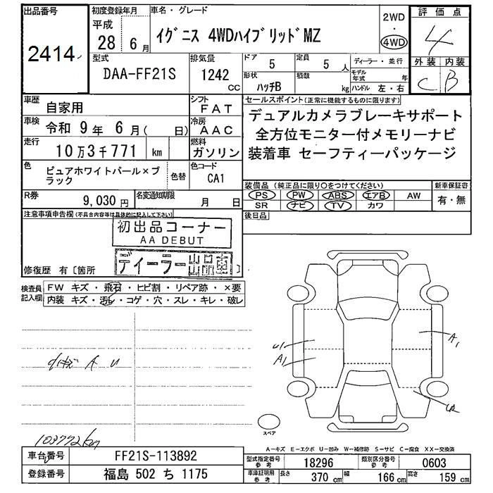 | HYBRID MX | DAA-FF21S | K12C | FF | CVT | 1242cc | 91ps(67kW)/6000rpm | AИ-92 | 1 501 200 | |