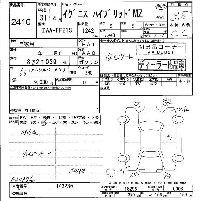 | HYBRID MG | DAA-FF21S | K12C | FF | CVT | 1242cc | 91ps(67kW)/6000rpm | AИ-92 | 1 408 000 |