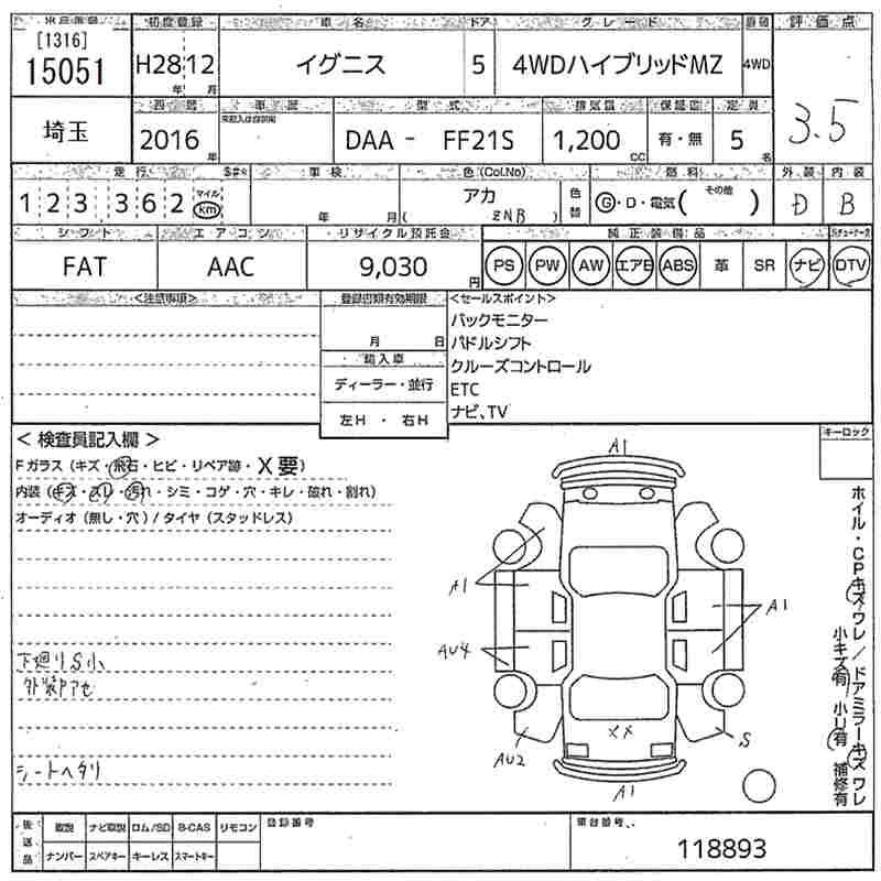| HYBRID MX | DAA-FF21S | K12C | FF | CVT | 1242cc | 91ps(67kW)/6000rpm | AИ-92 | 1 501 200 | |