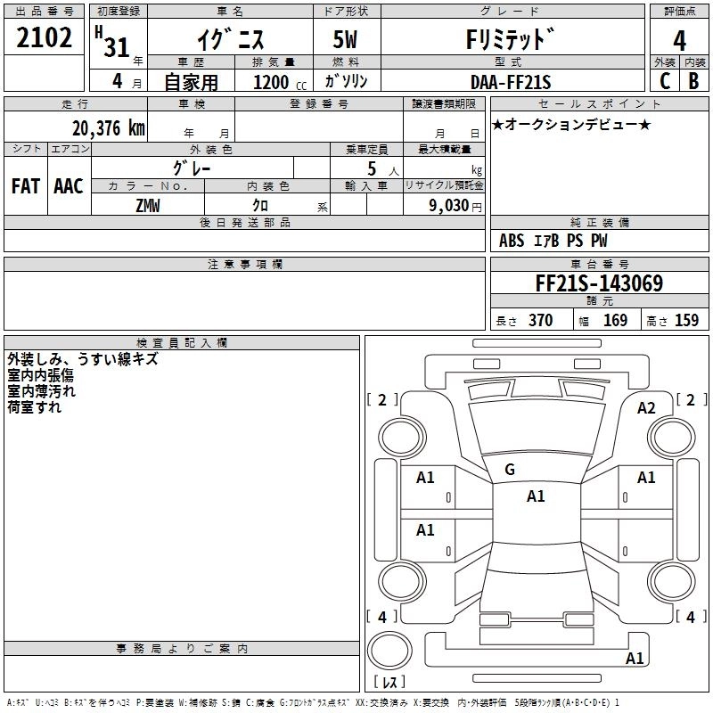 | HYBRID MG | DAA-FF21S | K12C | FF | CVT | 1242cc | 91ps(67kW)/6000rpm | AИ-92 | 1 408 000 |