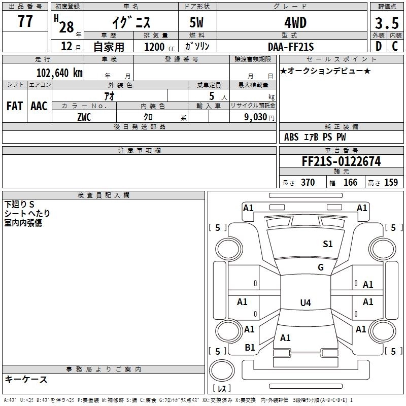| HYBRID MG | DAA-FF21S | K12C | FF | CVT | 1242cc | 91ps(67kW)/6000rpm | AИ-92 | 1 382 400 |