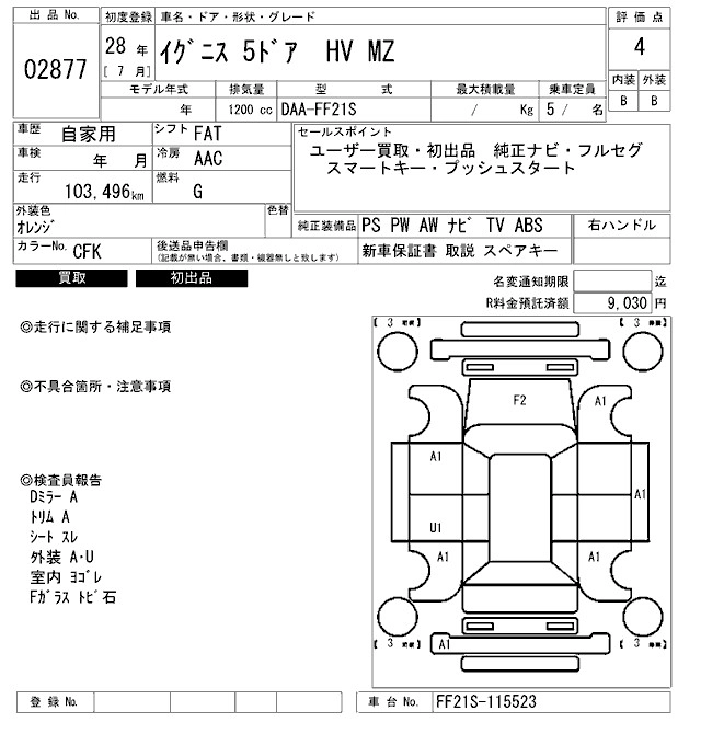 | F LIMITED | DAA-FF21S | K12C | FF | CVT | 1242cc | 91ps(67kW)/6000rpm | AИ-92 | 1 785 240 | |