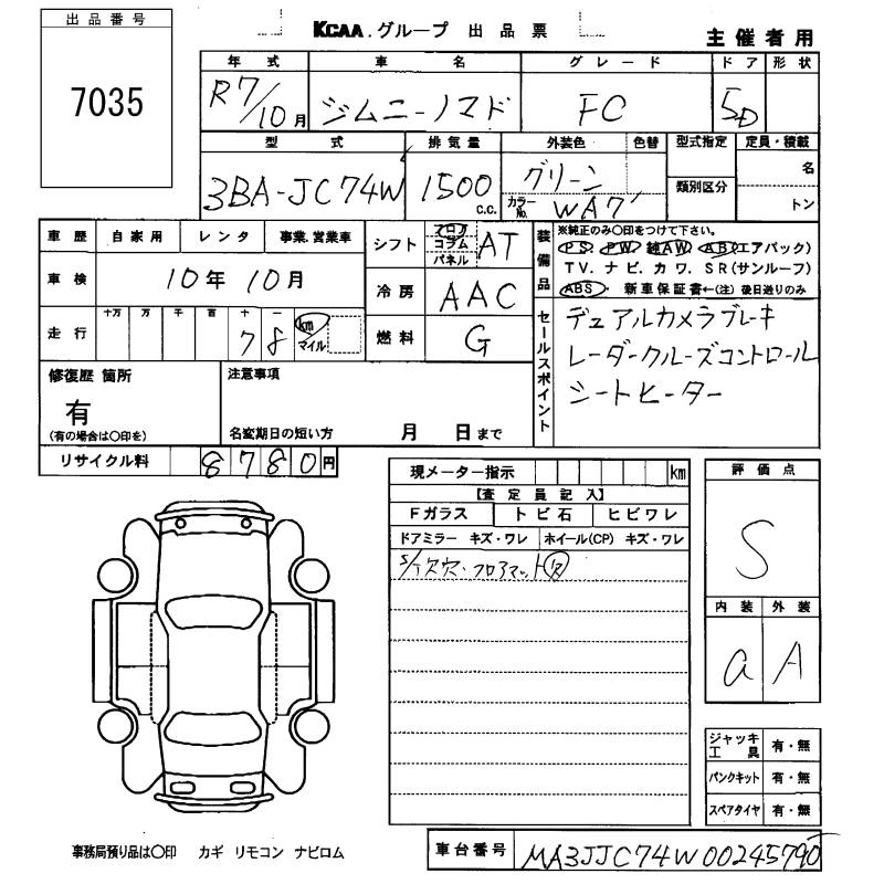 Статус выставлен на аукцион Лот 7035 Аукцион KCAA Fukuoka Дата аукциона 29.01.2026