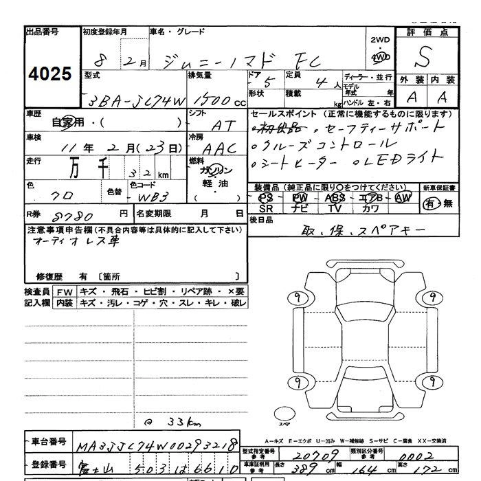 Статус выставлен на аукцион Лот 4025 Аукцион JU Shizuoka Дата аукциона 17.03.2026