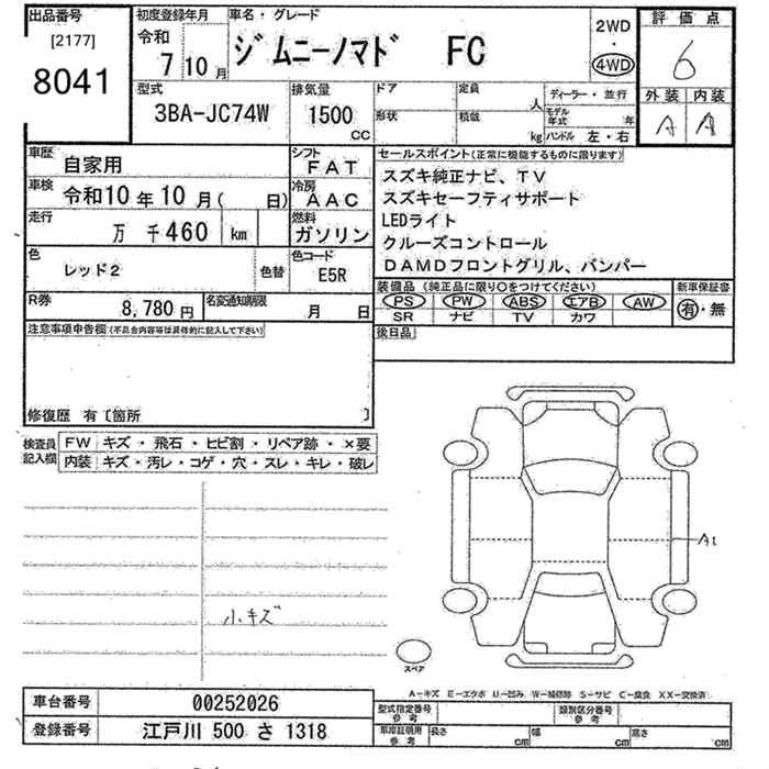 Статус выставлен на аукцион Лот 8041 Аукцион JU Tokyo Дата аукциона 16.03.2026