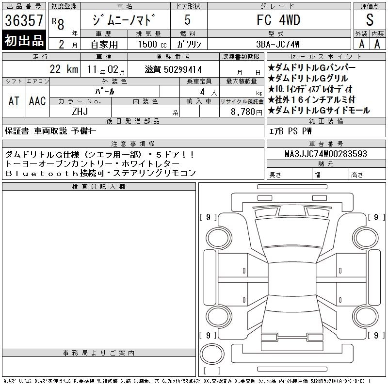 Статус выставлен на аукцион Лот 36357 Аукцион CAA Chubu Дата аукциона 18.03.2026