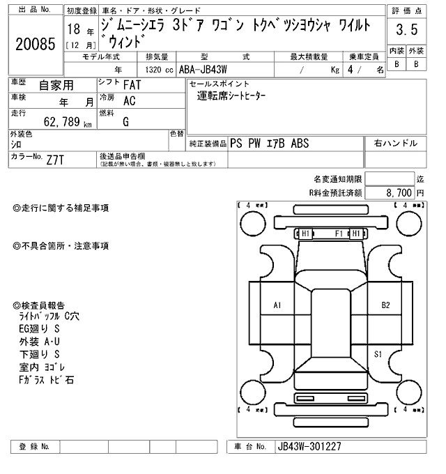 | LAND VENTURE | ABA-JB43W | M13A | Part-time 4WD | 5MT | 1328cc | 88ps(65kW)/6000rpm | AИ-92 | 1 643 250 |