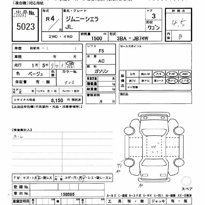 SUZUKI JIMNY SIERRA 2022 г., лот № 5023
