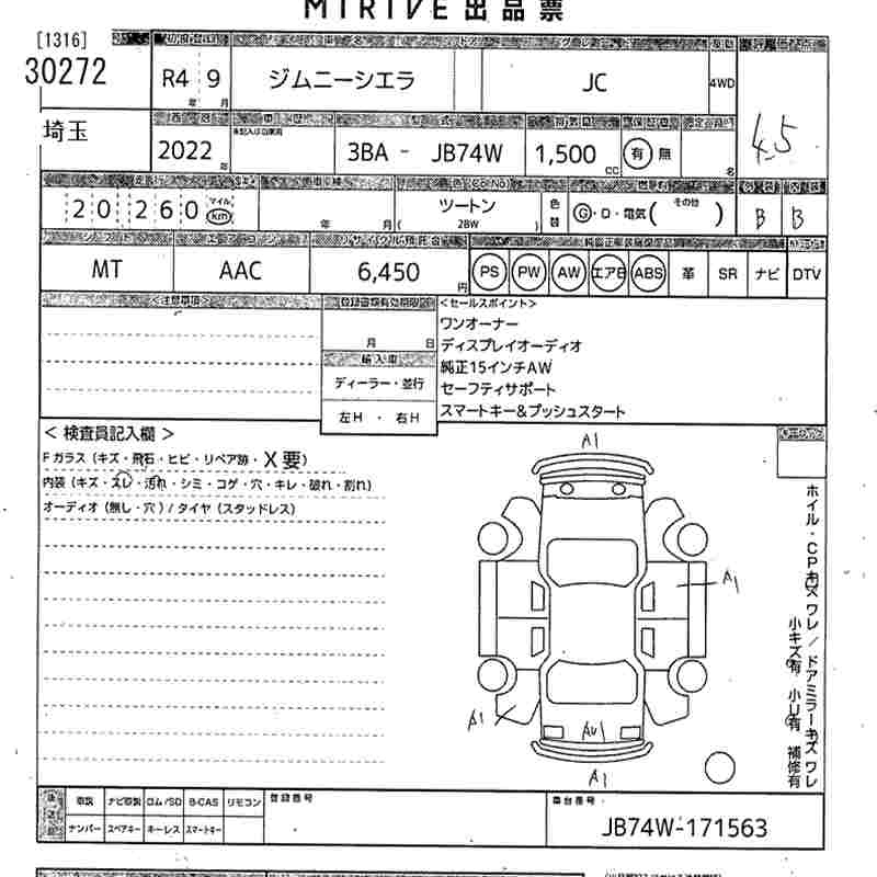 Статус выставлен на аукцион Лот 30272 Аукцион MIRIVE Saitama Дата аукциона 04.02.2026