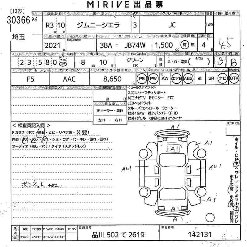 Статус не продан Лот 30366 Аукцион MIRIVE Saitama Дата аукциона 25.03.2026
