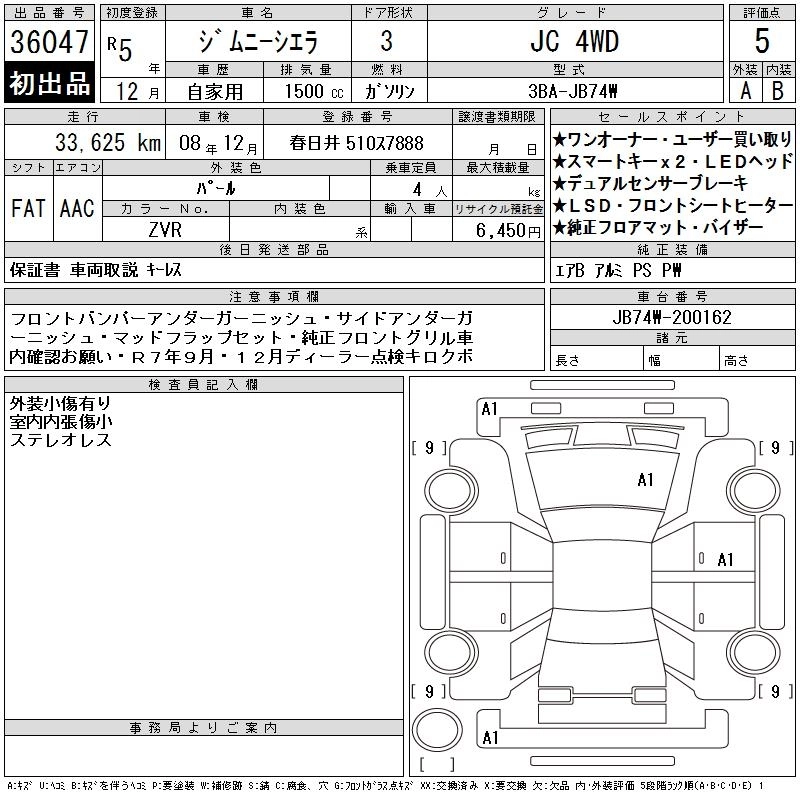 Статус продан Лот 36047 Аукцион CAA Chubu Дата аукциона 25.03.2026