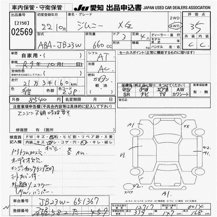 Статус выставлен на аукцион Лот 2569 Аукцион JU Aichi Дата аукциона 19.03.2026