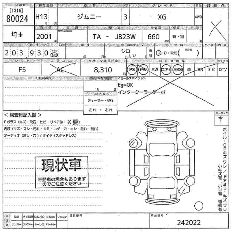 | XG | TA-JB23W | K6A | Part-time 4WD | 5MT | 658cc | 64ps(47kW)/6500rpm | AИ-92 | 1 185 000 |