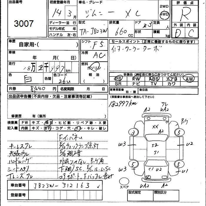 | XG | TA-JB23W | K6A | Part-time 4WD | 5MT | 658cc | 64ps(47kW)/6500rpm | AИ-92 | 1 200 000 |